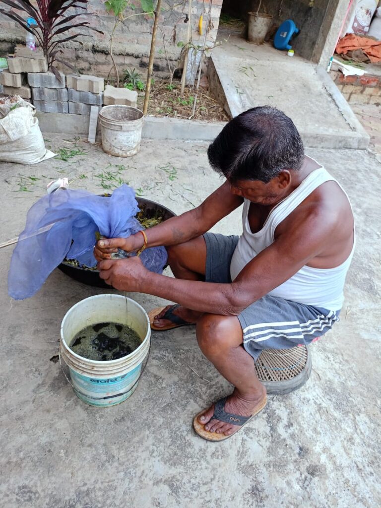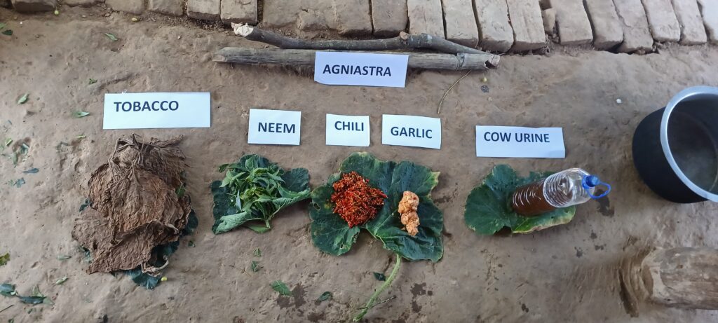 In response, NEWS introduced Agniastra, meaning “Fire Weapon,” a natural and low-cost bio-pesticide. Agniastra is made from locally available ingredients, including cow urine, neem leaves, tobacco, chili, and garlic, making it an accessible and sustainable alternative to synthetic pesticides.